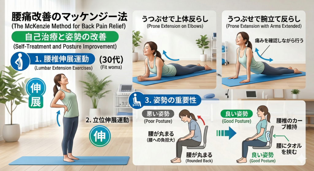 上記の画像にあるマッケンジー法が有効になることが多いです