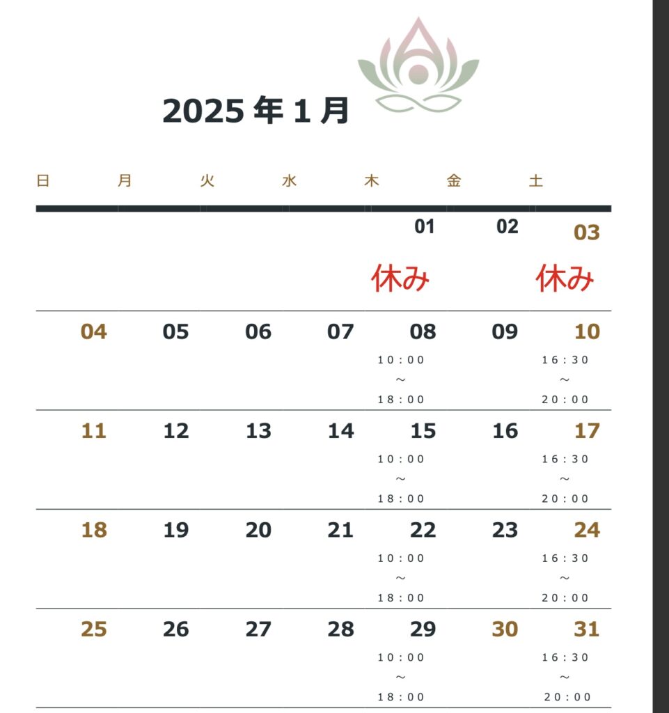 1月の営業日